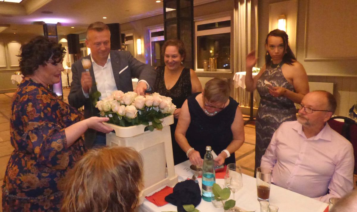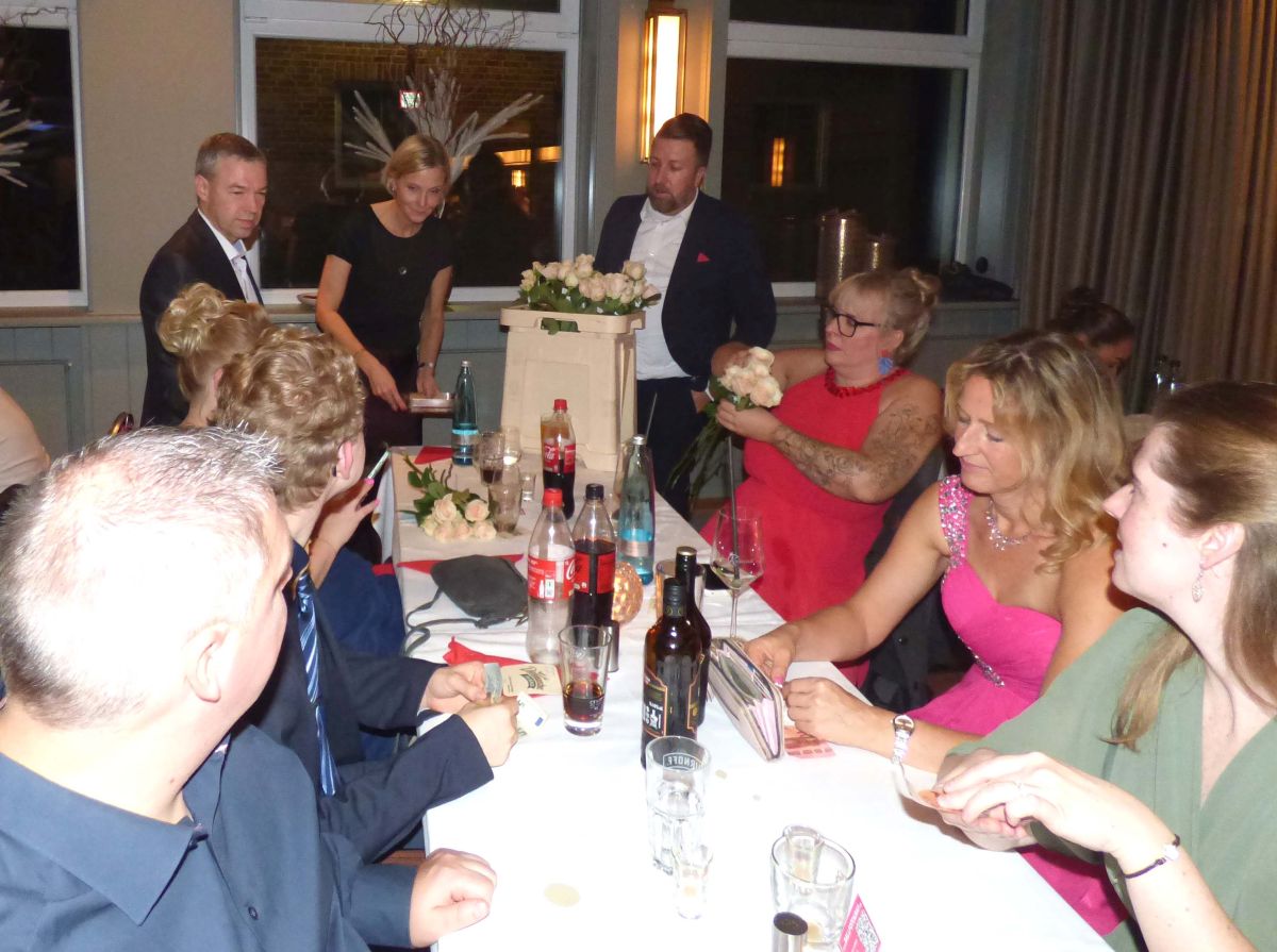In seiner Begrüßungsrede bedankte sich der Vorsitzende, Jan Löffler bei dem Festausschuss für seine engagierte Arbeit die schon im Vorfeld zum Sportlerball ein wichtiger Baustein ist. Auch allen Spartenleiterinnen und Spartenleitern zollte er seinen Dank für die bisher geleistete Arbeit. Kurz ging er auf die Vielzahl der teilweise großzügigen Spenden von ansässigen Betrieben ein und betonte, dass anlässlich des Jubiläumsjahres ein E-Bike als Hauptgewinn die Tombola schmückt. Da die Preise nur in Verbindung mit dem Erwerb der Rosen zur Auslosung kommen, waren die 350 Rosen an diesem Abend besonders schnell vergriffen.