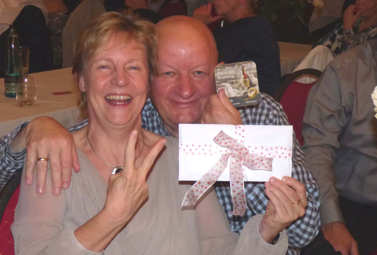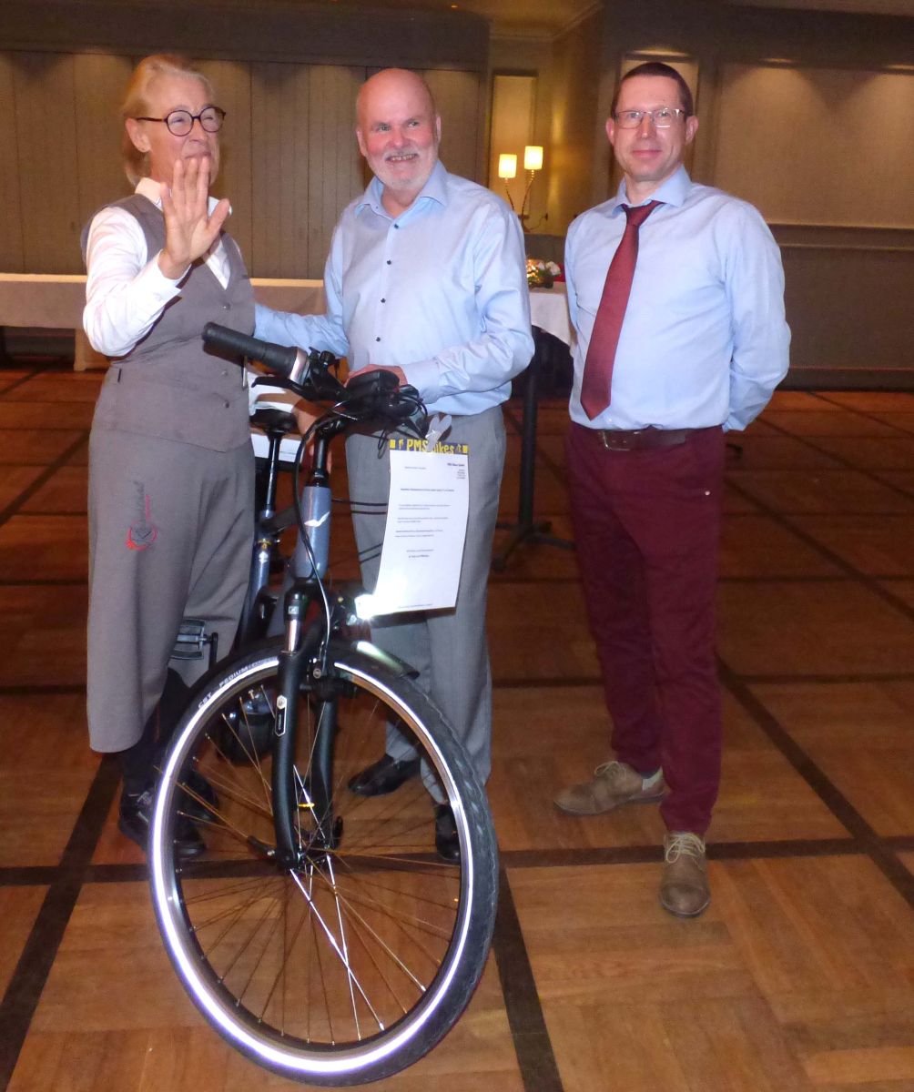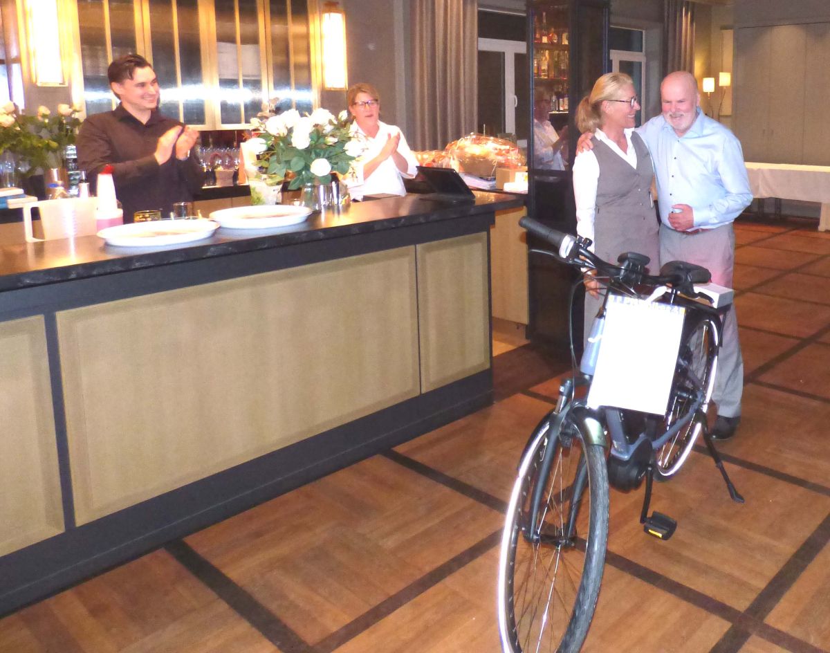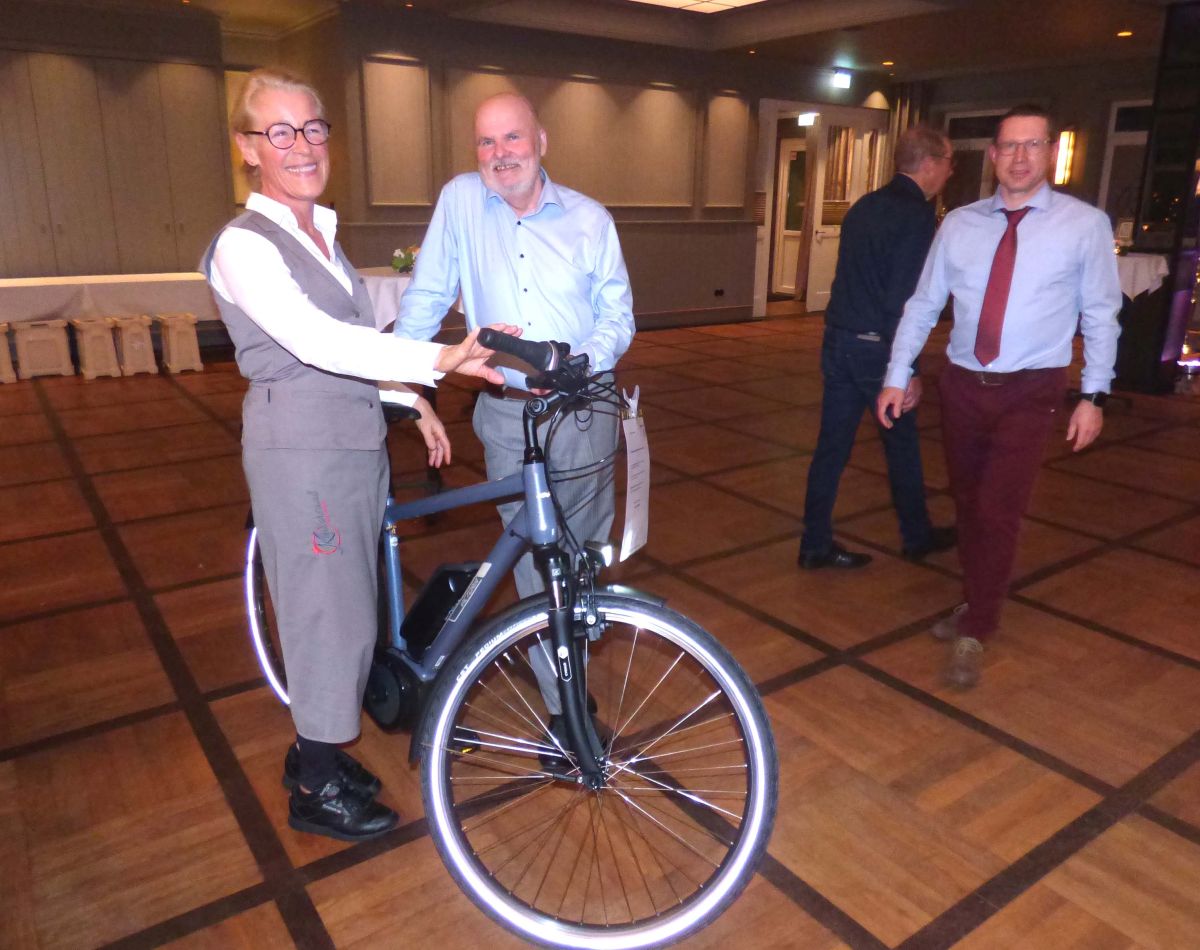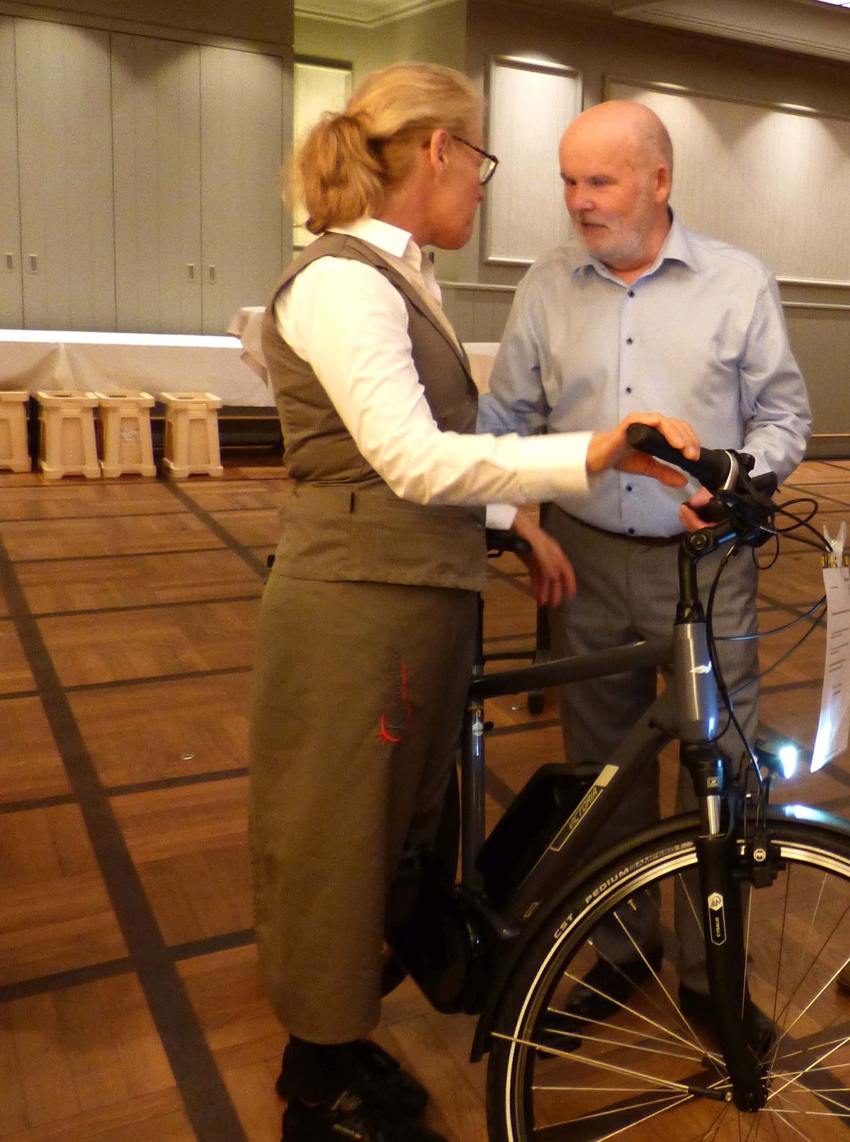 Bei der dritten und letzten Runde der Tombola gewann die Servicekraft des Kaisersaals, Marion Glesmann den Hauptpreis und konnte glücklich mit ihrem neuen E-Bikenach Hause fahren.