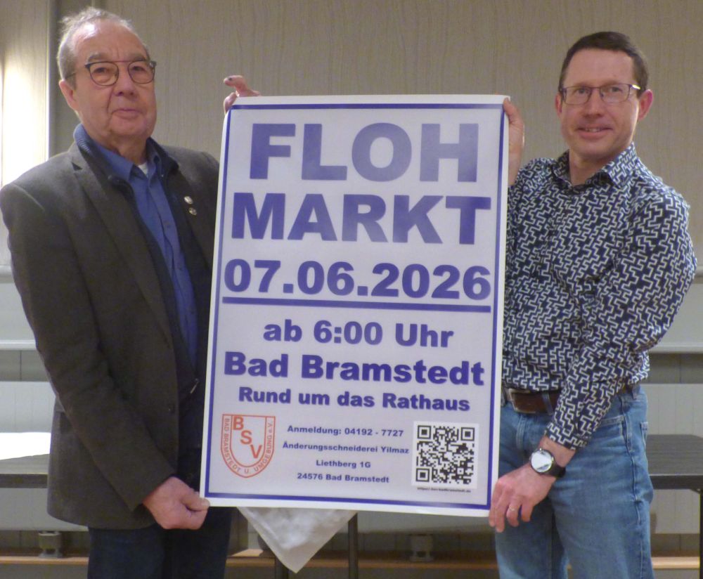 Der Betriebssportverband Bad Bramstedt (BSV) richtet seinen jährlichen Flohmarkt am 07.06.2026 aus. Das Motto lautet wieder „Rund ums Rathaus“. Es wird wie immer die Mühlenstraße genutzt sowie der Bleeck, der teilweise für den Autoverkehr gesperrt ist. Somit dürfen sich Besucher und Standbetreiber auf einen autofreien Sonntag in diesem Bereich freuen.
