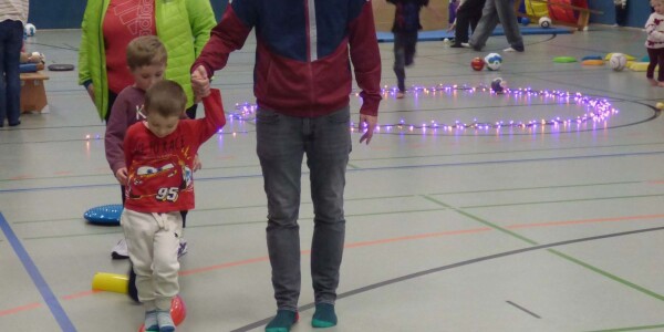 Am Anfang der Stunde wird oft gesungen. Weiter gibt es dann verschiedene Übungen und Spiele. So z.B. einen Rundkurs mit Turnübungen, Spiele mit dem Ball, Kreisspiele und Springen.